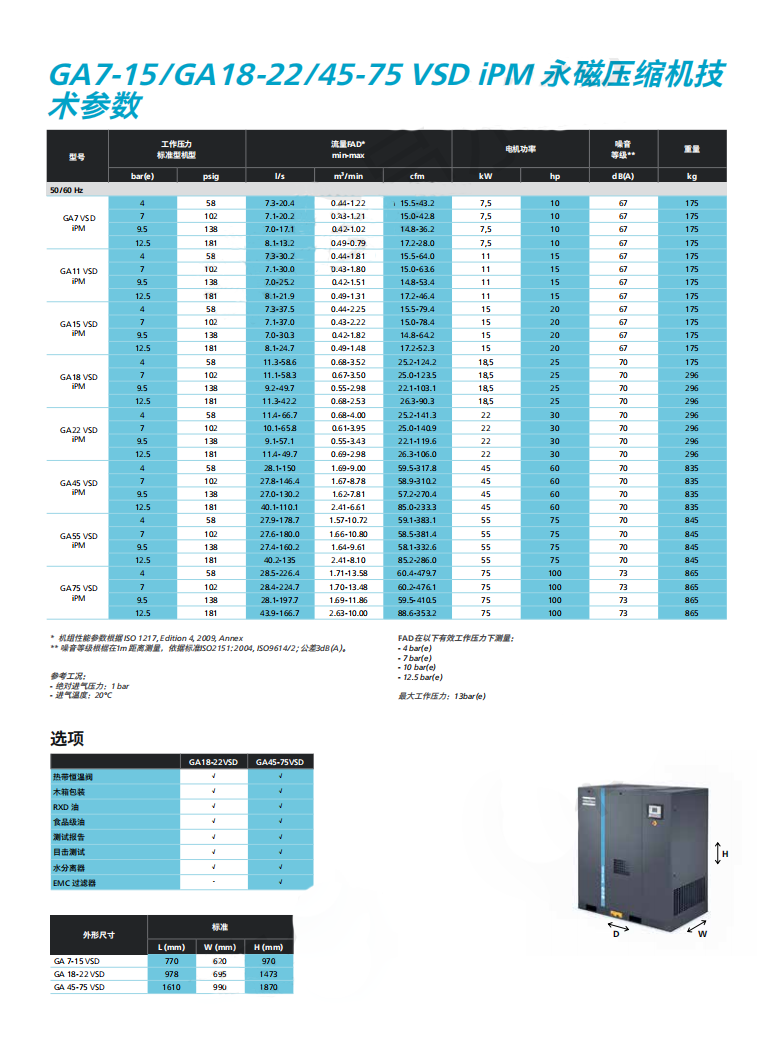 阿特拉斯·科普柯的GA7-15/GA18-22/45-75VSD永磁變頻壓縮機精巧的驅動和智能控制讓其擁有出色的可靠性和效率。該系列是采用了內置永磁電機(iPM)和壓縮機專用變頻器的變轉速驅動壓縮機。GA7-15/GA18-22/45-75 VSD比定頻機型平均節能35%*,為空壓機行業樹立了成本節約與穩定性能的新標桿。
